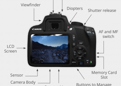 - Aperture (f-stop) – Controls how much light enters; affects depth of field (blurry background vs sharp focus).