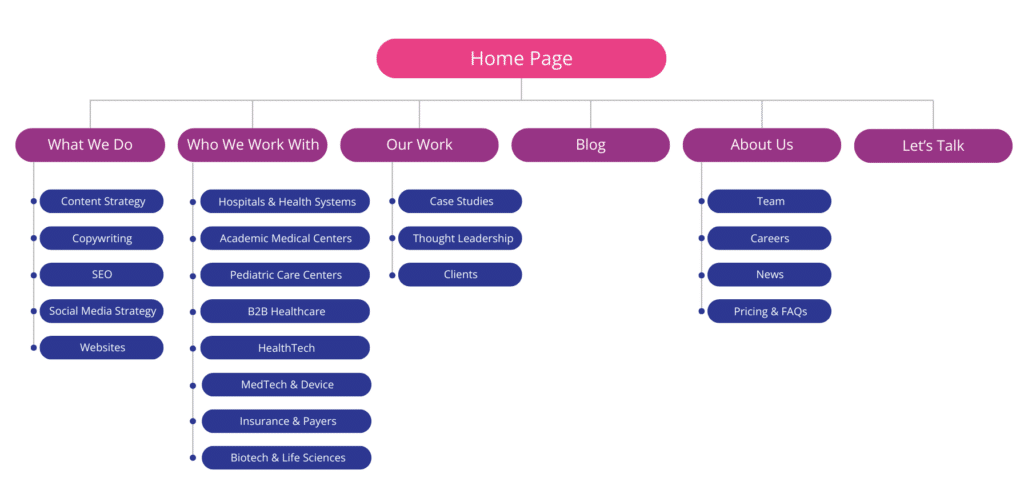 - If any pages have subpages (e.g., Services > Photography, Design), include them.